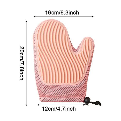 - شیارهای سیلیکونی: طرف دیگر دستکش دارای شیارهای سیلیکونی است که برای ماساژ و شستشوی بدن حیوانات در حمام طراحی شده است.